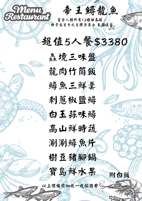 因菜單依季節變換,如需各種價位詳細菜單,歡迎您來電索取。